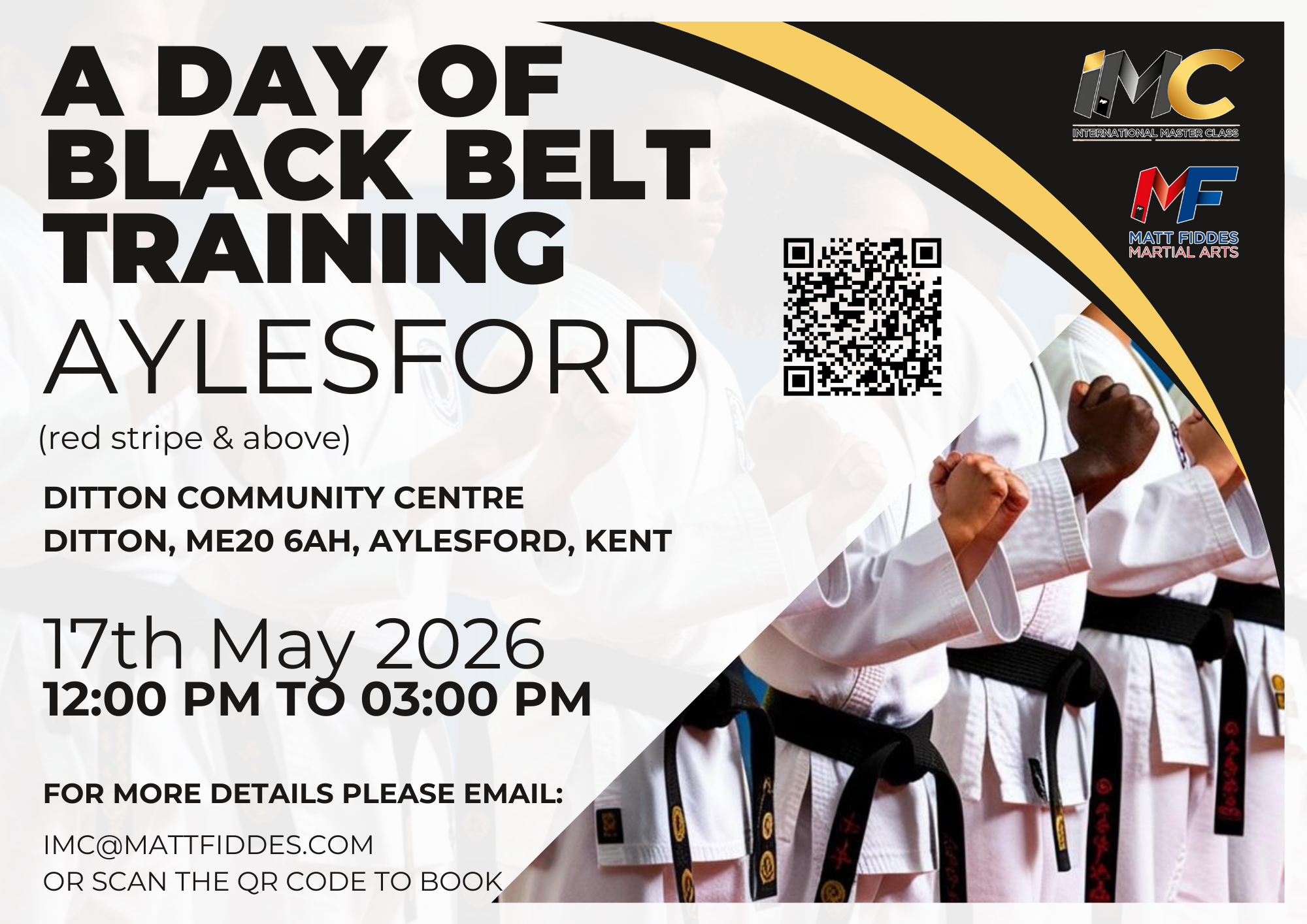 As an IMC student you will have access to the unique IMC clothing range which is exclusive for those that attend an IMC event. This ranges from basic t-shirts to our Premium Range of clothing designs which reflect the standard and quality of what a Black Belt should be like. Order yours now.